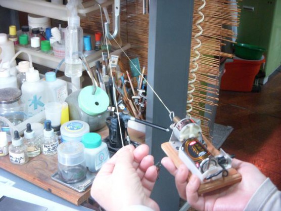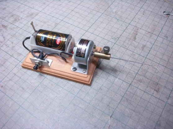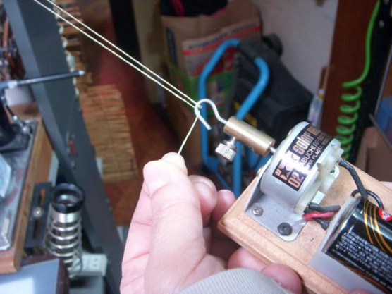 同じく先程の自作道具 Auto Line Twister (自動糸捻り機)を使う。