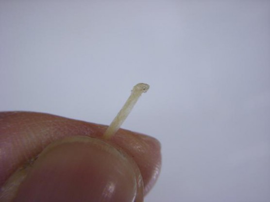 束ねられている細い繊維を途中で切ってしまわないよう十分注意する。