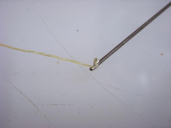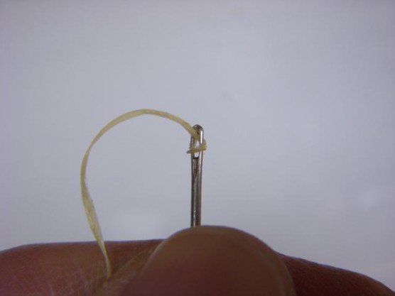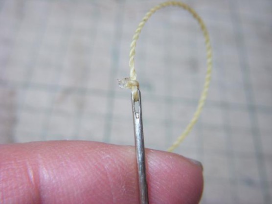 貫通させた糸をグッと引張って、糸通しは完了だ。