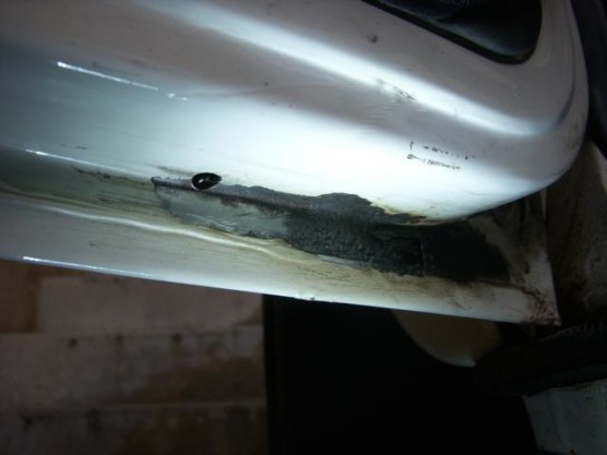 ミニのサイドステップモールのフロント側付近にサビ色の雨だれの筋があったので