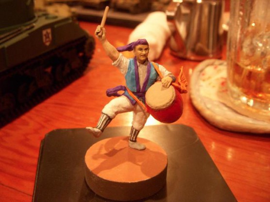 レジンでスクラッチされたエイサー大太鼓の青年のフィギアー
