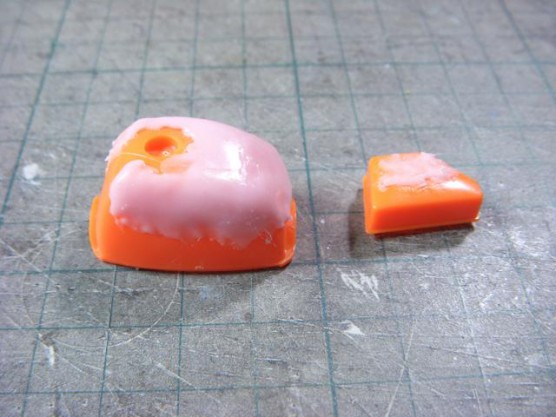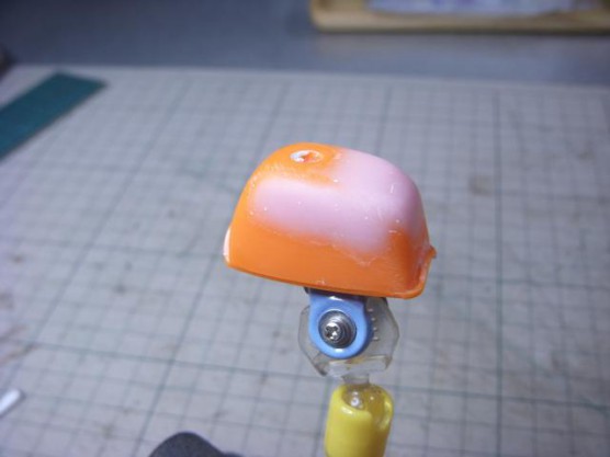 すかさず、部品に直接硬化液を垂らして部品上で粘土状のレジンをコネながら付けてみると、今度はバッチリ喰らい付いてくれました。