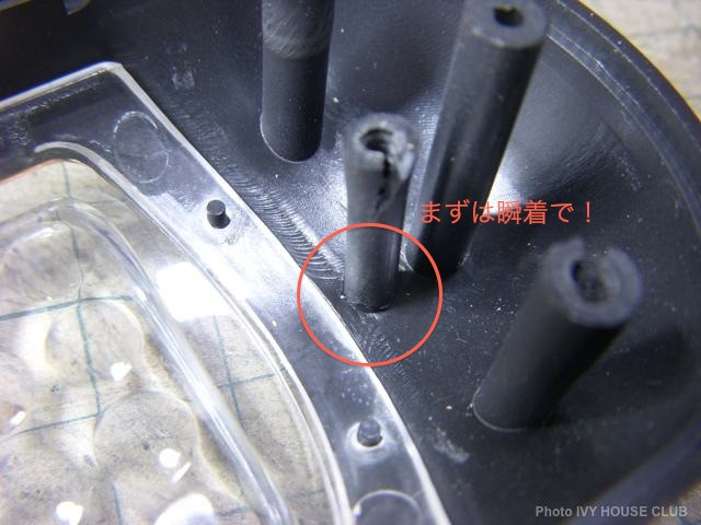基盤を止めるねじ受けも根元からポッキリと折れてしまっているさぁ〜