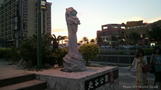 サンセットビーチ入り口には立派な龍の柱が迎えてくれます。