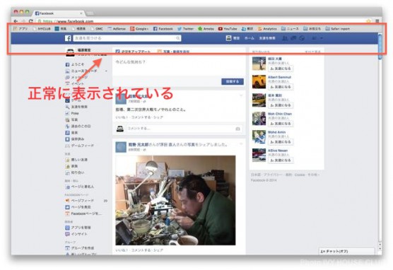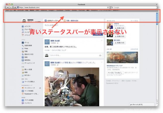 フェイスブックのステータスバーも問題なく表示されているね〜♪