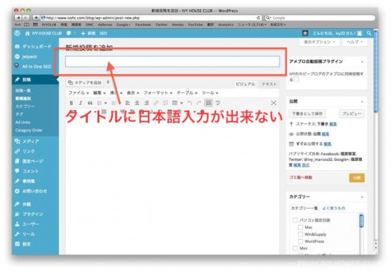 iMacOSX10.6.8では、記事の書き込みでタイトルの日本語入力が出来なくなったといった