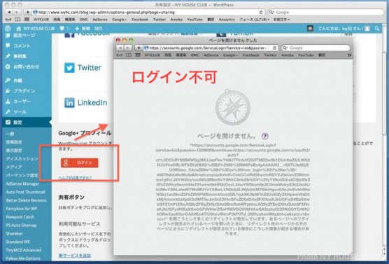 ワードプレスの設定画面でログインボタンをクリックしたところ