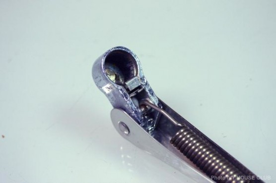板バネ状の押さえ金具で簡単に固定しているだけだ。