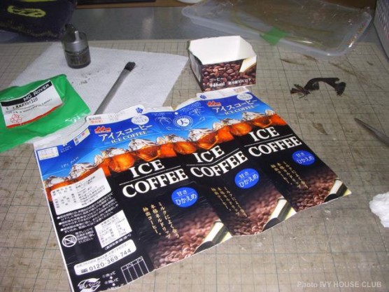 市販飲料水の紙パックで代用ガスケットを作ります。