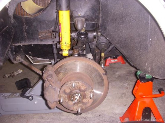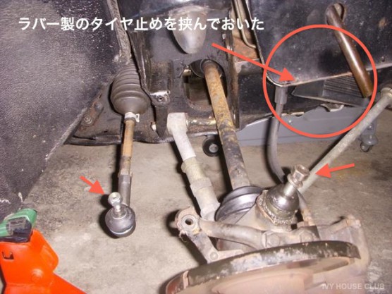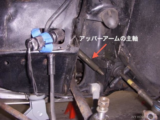 アッパーアームを外す前に、ハブをパンタジャッキで持ち上げておいて