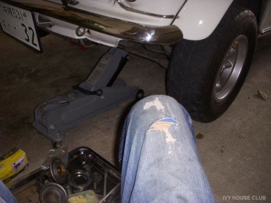 おっとっと!最初で、ホイルナットを緩めるのを忘れて上げてしまった。
