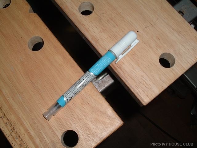 作業ランプは、マイクスタンドに蛍光灯ランプを挟みこんで代用します。