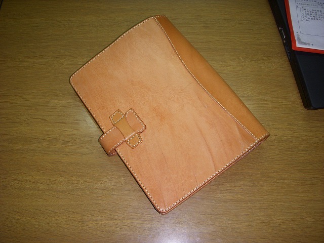 以前に、システム手帳を作ろうとした時に採寸を間違えて失敗してしまい、その内に再利用しようと思って、大事に取って置いた革材料(サドルレザー)がある。