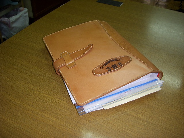 既に材料の切り出しも終わって各パーツとして出来上がっていた材料を、ほんの少しだけ手直ししてオリジナルな豪華な革製の車検証ケースを作ることができた。