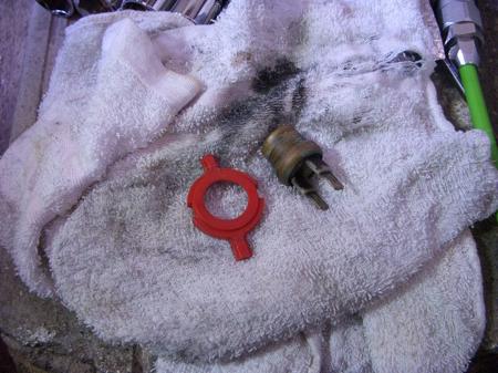 因みに、高年式のミニはドレンコックが付いてなくて、このセンサースイッチがドレンコックを兼ねている。