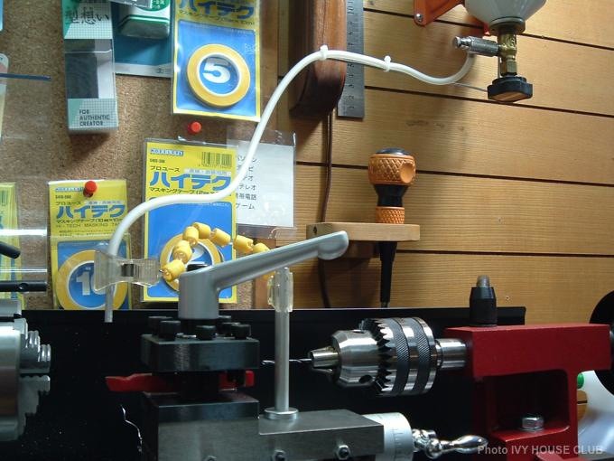 今回は、部材の切削時に自動的に潤滑油などを点滴する