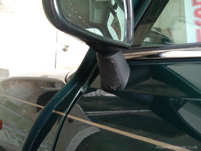 見てのとおり、サイドミラーベース部分の取り付けカバーが真っ白に変色しています。