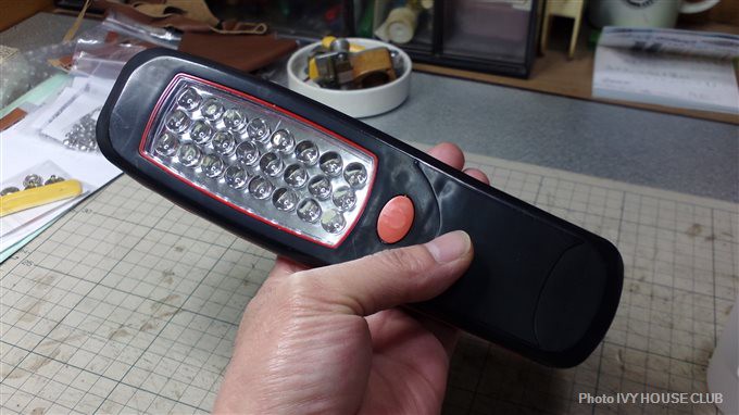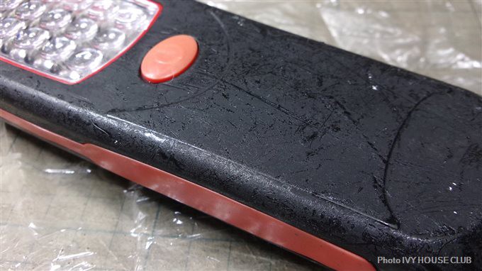ついでにアストロで買ったワークライトも底にある電池ボックスの蓋がベタベタになっていたので同じようにMrうすめ液と無水エタノールで拭き取っておきました。