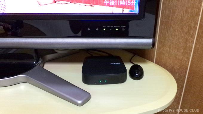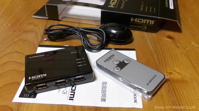 奥にあるマウスのようなドーム状の形のものが、リモコンの受信機になっていて手元で、3系統の機器の接続を切り替えることができます。
