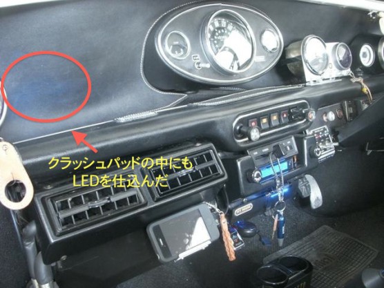 助手席の床からダッシュボード裏に上がり、運転席側に繋がる