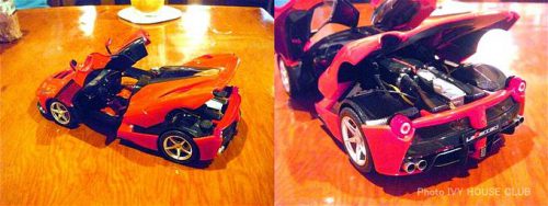 前回持ってきてもらった、未完成で製作途中のフェラーリが、完成したとのことだけど、ちゃっかり、もう一個のカーモデルキットまで完成さてくれて・・・!