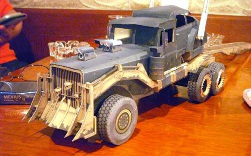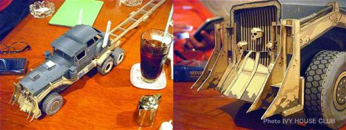 これが今回驚かされた、Oさんが持ってきたものです。なんと、映画マッドマックスに出てきた、トレーラーのペーパークラフトモデルだぜ~(驚)