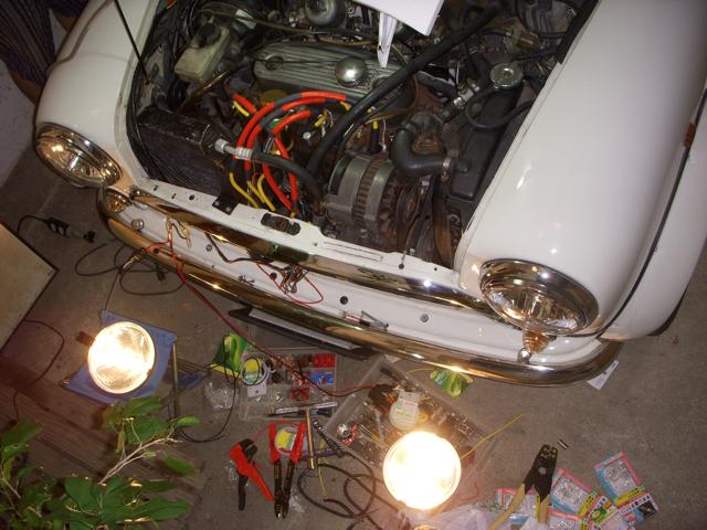 ミニの暗いヘッドライトを補うため以前から計画していた補助灯の取付けが一応一段落した。
