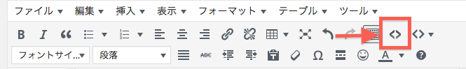 投稿画面のエディタの上部に画像のようなアイコンが現れているので、クリックします。