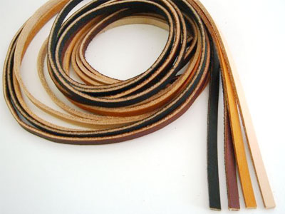 革は必要な分をカットして販売されるだけではなく、ひもの状態に加工されて販売もされており、ウォレットロープやアクセサリーの一部として採用されることが多く、その種類も豊富にあります。