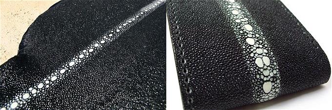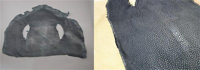 ビーズのような特徴的な粒子を持つエイの革は、それほど大きくないために主に小物の装飾用に使用されることが多い。