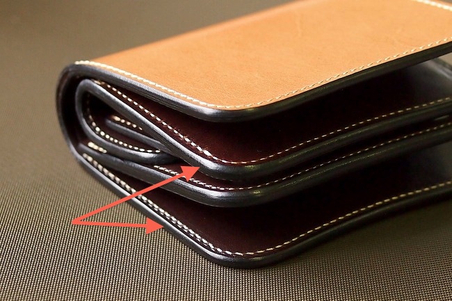 レザークラフトでは、断面のコバ処理の程度が、製作するアイテムの見栄えと完成度に大きく影響するため、このコバ処理がレザークラフトマンの大きな腕の見せ所になっているといっても過言ではありません。