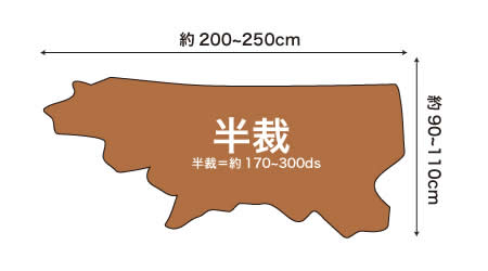 また、デシ以外にも牛1頭分の半分の革という意味で、半裁と表示されて売られている場合もあります。