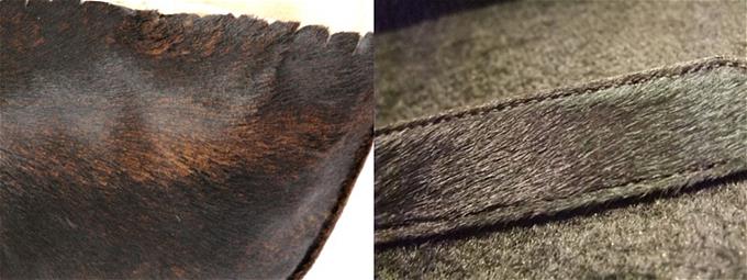 馬の革は一般的に牛革に比べると厚み、強度は低く、キメが粗いと言われていますが、その代わりに軽くてしなやかで、柔軟性に優れているので、ジャケット等の衣類や、ソファ等の家具によく用いられます。