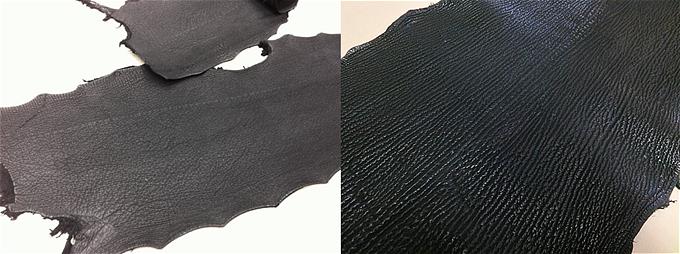 鮫革は水に強く、強度の高さが特長の鮫革は、独特の美しいシボと使うほどに柔らかい艶がます高級皮革です。