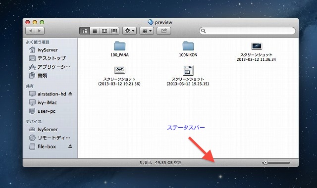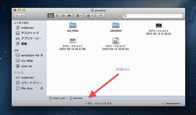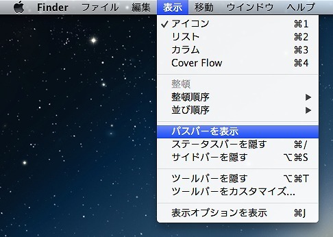 ちなみにMac OSX 10.6.8 スノーレオパードにもパスバーを表示/隠す項目と
