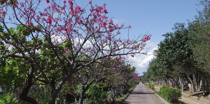 ショッキングピンクの美しい寒緋桜前線は、さらに沖縄県南部のほうへと