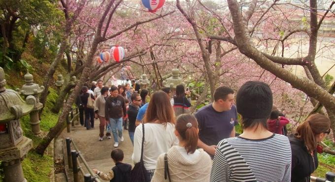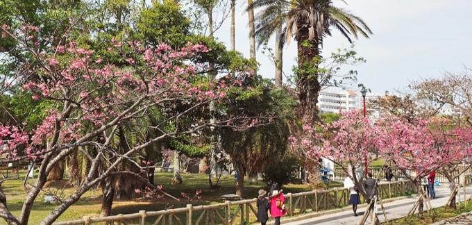 日本一早い桜まつりが開催され、沖縄の冬の風物詩として知られています。