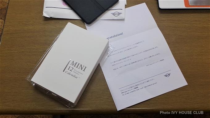 当選したというMINI2017オリジナルカレンダーでした。