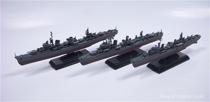 船名のデカールも張ってないので、おやじさん本人も曖昧で、たぶん画像最上部のモデルがユキカゼ、中段は不明、最下段がマツ、またはカヤだろうということでした。