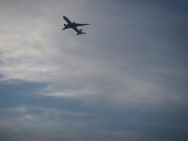 帰り道の瀬長島付近で飛行機が目の前を飛んでいたので