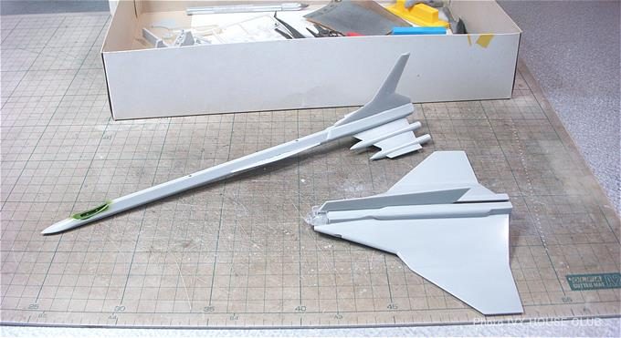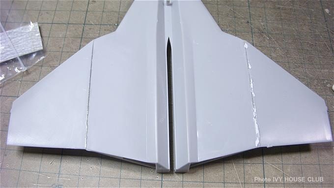 写真は尾翼を胴体に接着した直後なので接合部分が荒れていますが