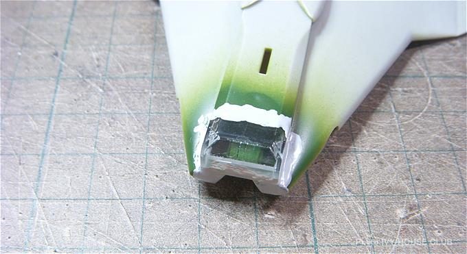 あらかじめコクピットの内部を塗装した後に透明部品を接着!