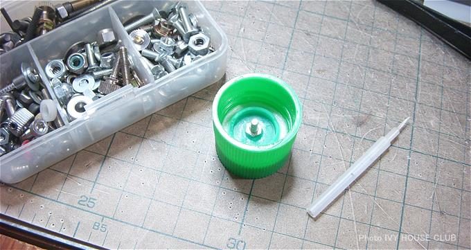 ふたに取り付けたボルト&ナットに刷毛を強引にねじりこんで・・・!