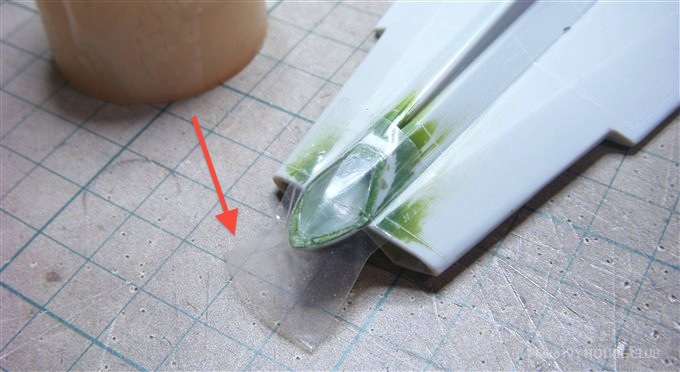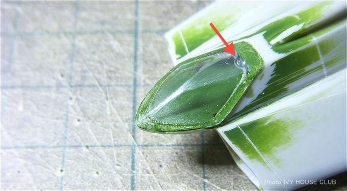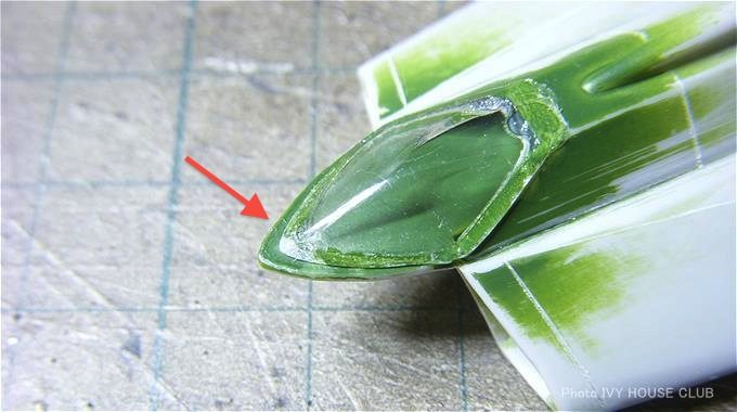手作りの瞬着用グルーアプリをつかって、はみ出した箇所に瞬着を盛ります。