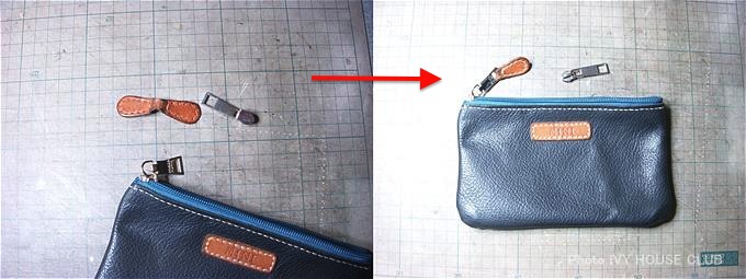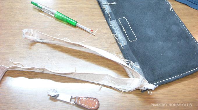 では、ポーチのほうの壊れたファスナーを取り除きます。