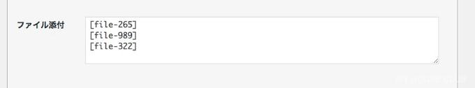 先程のフォームタブで、新しくファイル添付のタグを設定保存すると、上部にそのフォームタグが追加表示されているのでコピーします。