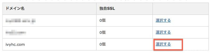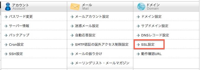 「ドメイン」項目以下にあるSSL設定ボタンをクリック