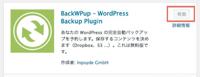 ワードプレスのデータベースをバックアップをするには、BackWPupというプラグインが便利だということなので、さっそくインストールして有効化します。