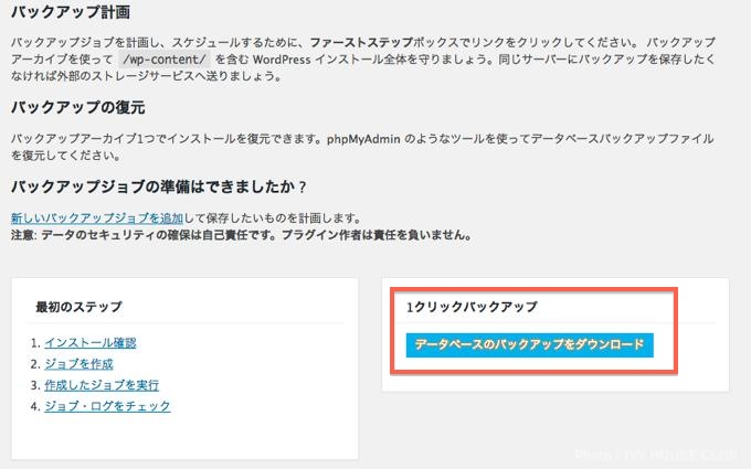 そのまま何にもせずに「データベースのバックアップをダウンロード」ボタンをクリックしてSQLファイルを取得しておきます。