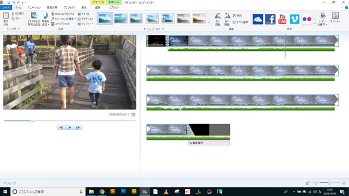 動画の編集はWindows標準アプリのムービーメーカーでできました。